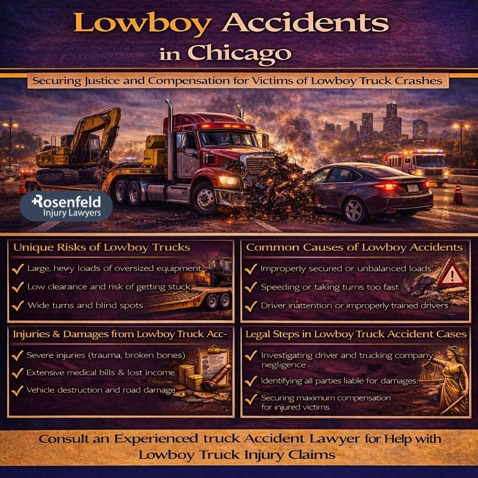 If you need an experienced truck accident attorney for lowboy truck crashes, contact us to discuss what happened and what evidence must be secured immediately. Our Chicago personal injury lawyers offer free consultations.